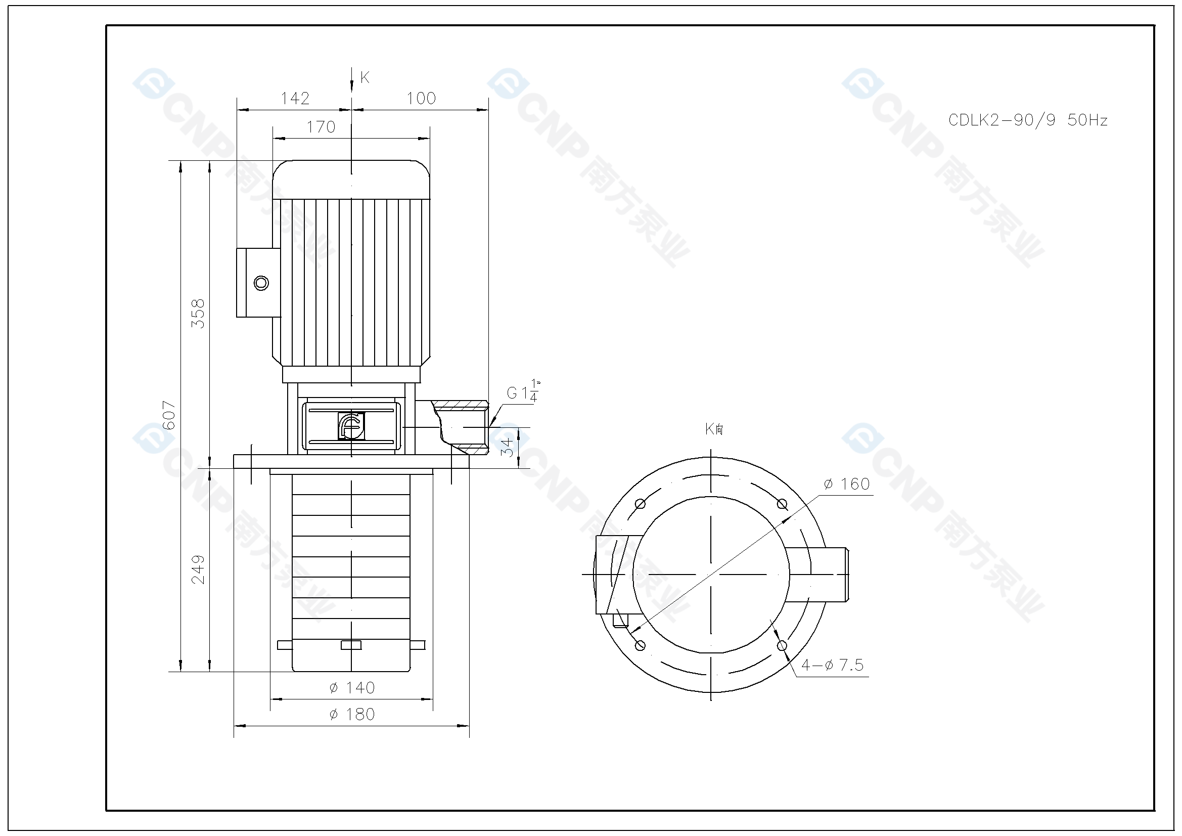 需要南方泵CDLK2-90/9外形CAD文件 請加銷售人員微信索取