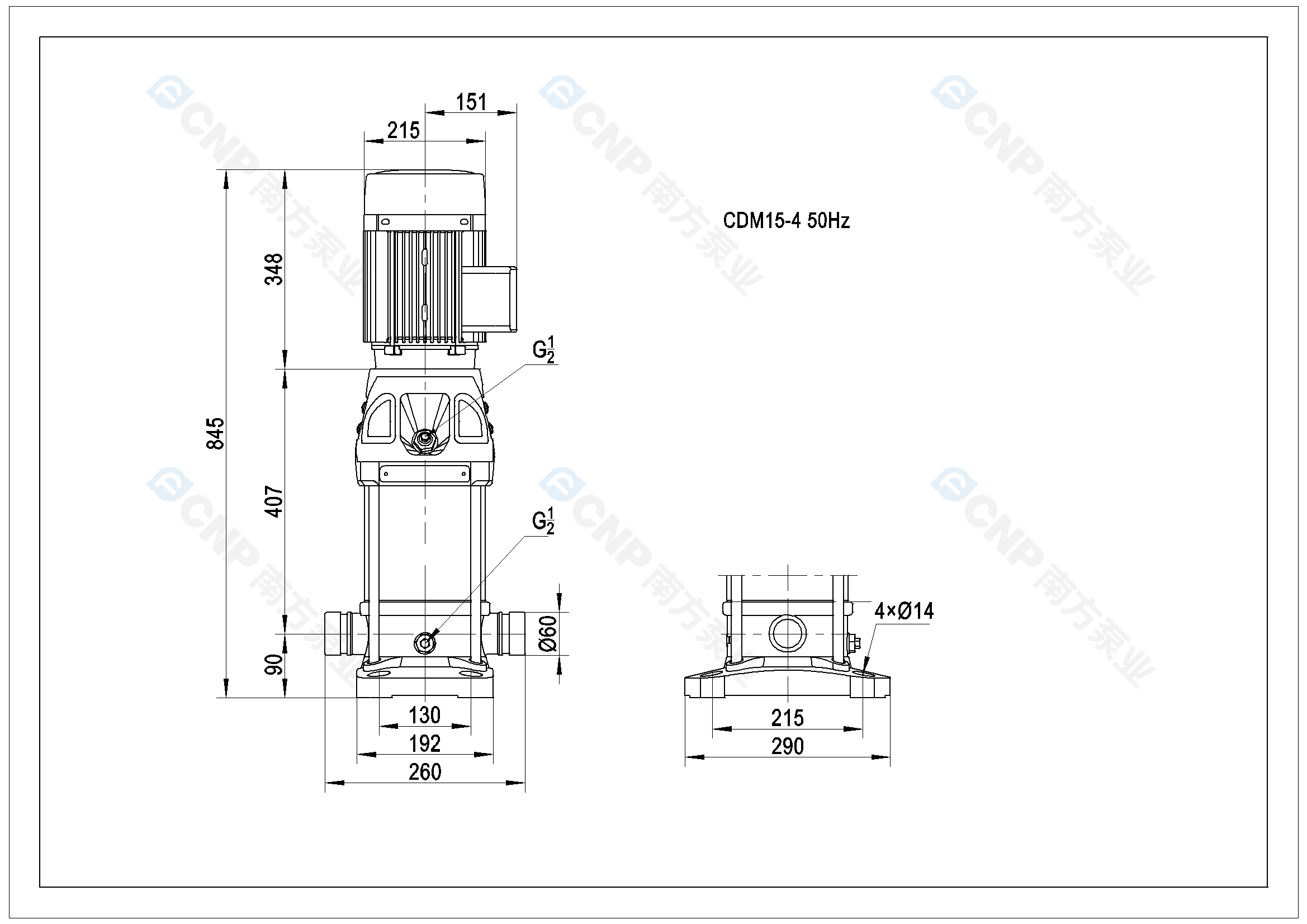 需要南方泵CDM15-4外形CAD文件 請加銷售人員微信索取