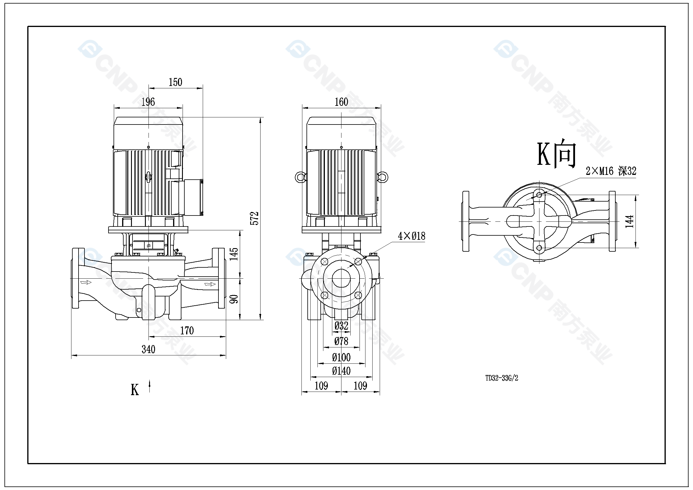 需要南方泵TD32-33G/2外形CAD文件 請加銷售人員微信索取